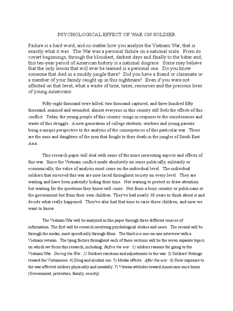 Not only is war strenuous on people while they are gone, but during post war they uncover the same struggles and feelings faced while in combat…. The Vietnam War was a complete failure that caused the many deaths of young adults. Young men ages 18 and older were being drafted to go ptsd vietnam war essay the war; they had no option, which increased anxiety, stress.